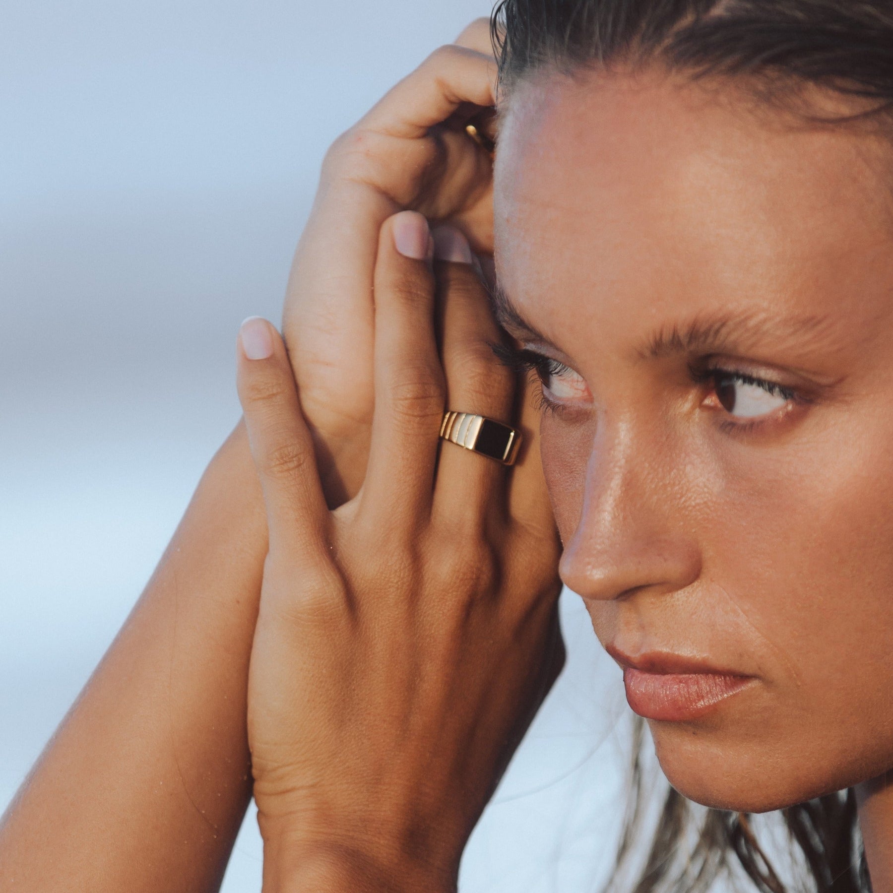 Inspiriert von der mutigen und gewagten Mode der 70er Jahre ist unser schwarzer Onyx-Ring das perfekte Statement-Stück für jeden Anlass.