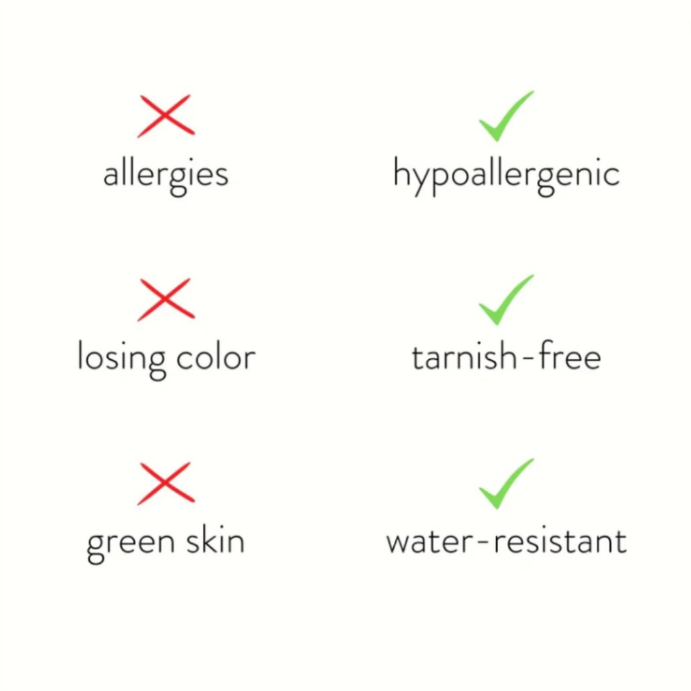 Hergestellt aus wasserdichtem Edelstahl, müssen Sie sich nie wieder um das Verblassen oder Anlaufen von Schmuck sorgen.